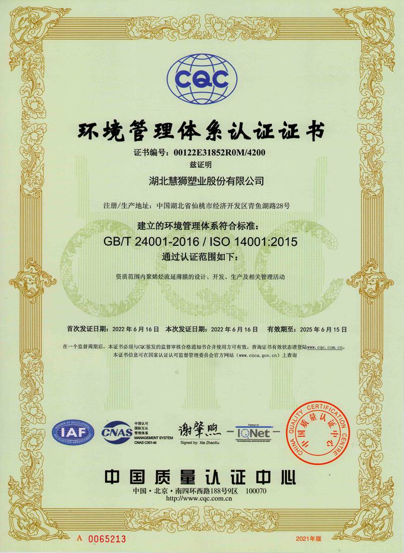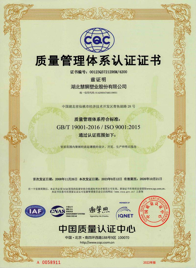 慧獅湖北慧獅塑業(yè)股份有限公司是一家專業(yè)從事研發(fā)、生產(chǎn)、銷售高性能聚烯烴流延薄膜的高新技術(shù)企業(yè)。